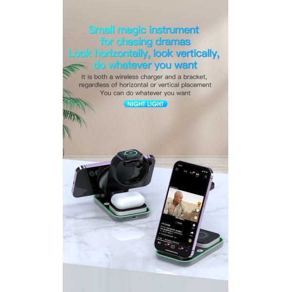 Multiple Devices Magnetic Wireless Charger Stand 3 In 1 Foldable Wireless Charger Images |